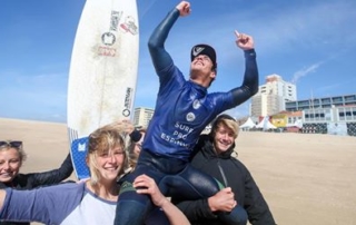 Mathis s'est adjugé, ce dimanche au Portugal, le Pro Espinho, première des cinq étapes du Junior Tour européen 2018. La première victoire de notre coq pei à ce niveau. « J'ai l'impression de bien connaître ce spot désormais, j'ai surfé avec toutes les marées et toutes les conditions » A 17 ans Mathis signe sa première victoire à ce niveau après avoir dû affronter, comme ses camarades en Lycra, des conditions changeantes et loin d'être évidentes sur le beach break de Praia de Baia. « J'étais hyper stressé avant cette série car c'était ma première finale en Pro Junior », confiait Mathis. « Je suis resté concentré afin de prendre les bonnes vagues, mais quand j'ai eu mon 9, je ne l'ai pas su parce que je n'entendais rien. [...]