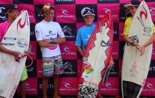 Louis TABÈRE ALLAMÉLOU (lycra blanc) vainqueur du Rip Curl Grom Search Le Rip Curl Grom Search "National Tour" a repris du service et lancé sa saison en Martinique sur le spot de Tartane. Cette compétition a permis aux meilleurs espoirs de s'affronter pendant deux jours dans de solides conditions. Dans la catégorie Surf Cadet, c'est notre jeune espoir Pèi Louis TABÈRE ALLAMÉLOU (du Radical Surf Club) qui en donnant le meilleur de lui-même a pu gravir la plus haute marche du podium et fait briller le drapeau Réunionnais. Même si elle peine à sortir des « cracks » ces dernières années suite au problème de la crise requin, la réputation de la Ligue Réunionnaise de Surf n’est plus à faire. Après des champions comme [...]